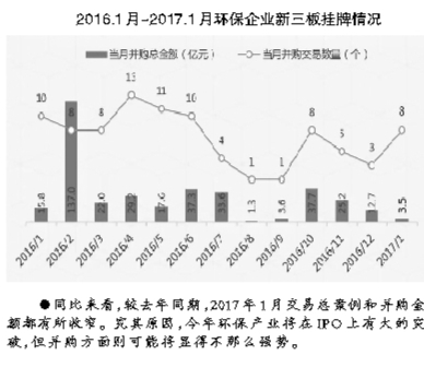 今年以來,環(huán)保產(chǎn)業(yè)并購持續(xù)。僅開年的第一個(gè)月,就出現(xiàn)了8例收購并購交易,涉及總金額共3.5億元。