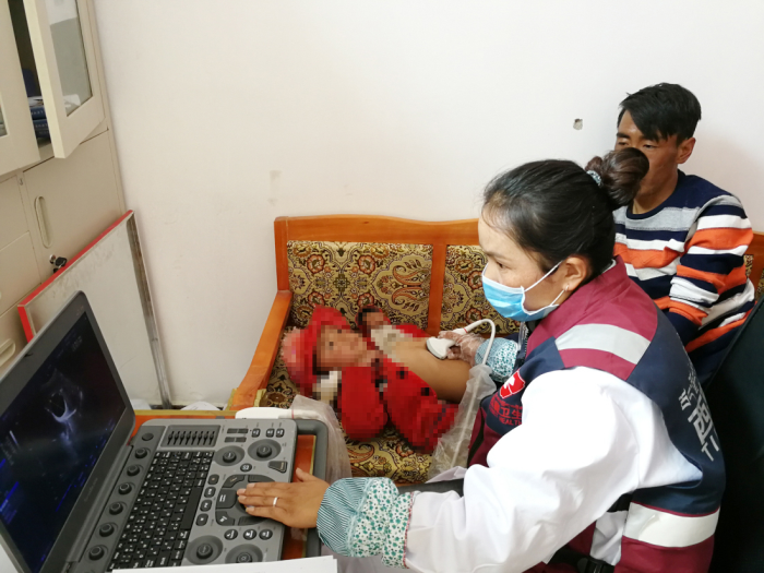 旺姆(化名),三歲,是同爸爸媽媽一起來的篩查中心,旺姆有一雙大大的眼睛,聲音非常甜美,看我在照相,害羞地往媽媽的背后躲,又好奇地探出小腦袋,非常可愛,爸爸媽媽體檢時(shí)她安靜地站在旁邊看,不哭不鬧,是個(gè)安靜的小寶寶,輪到小旺姆體檢時(shí),爸爸把她放在床上,格桑拉吉讓她躺下,小旺姆乖乖地躺好任由探頭在她的小肚子上劃來劃去。突然格桑拉吉臉色沉重,從衣服包里掏出手機(jī),開始拍B超機(jī)屏幕,我心里一緊,悄悄問她,她只是點(diǎn)頭,三歲的旺姆(化名)被診斷為疑似病例。