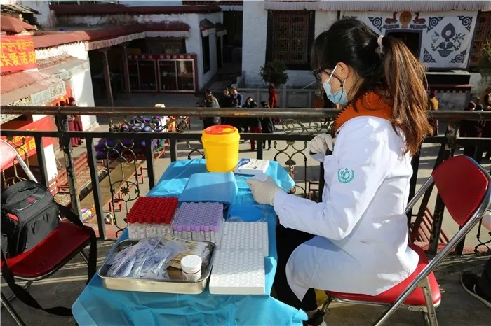 醫(yī)護(hù)人員們正在為尼眾和干部們檢查身體