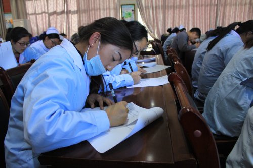 考場(chǎng)紀(jì)律異常嚴(yán)格,筆者也在阜康醫(yī)院婦產(chǎn)兒童分院參加了考試,員工分別以每行醫(yī)療、醫(yī)技、護(hù)理、行政交叉座次,醫(yī)療、醫(yī)技、護(hù)理、行政的考卷也各不相同?,F(xiàn)場(chǎng)由敖德秀副院長(zhǎng)、李君副院長(zhǎng)、劉連福副院長(zhǎng)監(jiān)考??荚囶}目并不難,只要認(rèn)真背誦應(yīng)知應(yīng)會(huì)手冊(cè)都是能夠輕松應(yīng)答的。但是,好多同事并沒(méi)有認(rèn)真學(xué)習(xí)應(yīng)知應(yīng)會(huì)手冊(cè),考試現(xiàn)場(chǎng)抓頭發(fā)的抓頭發(fā),咬筆桿的咬筆桿,各個(gè)凝神屏息經(jīng)蹙眉頭,現(xiàn)場(chǎng)氣氛很是緊張。