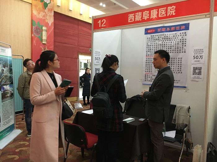 這場(chǎng)盛大的招聘會(huì)上云集了來(lái)自四川、廣東、云南、湖北、河南、新疆等全國(guó)各地的優(yōu)秀醫(yī)療機(jī)構(gòu),也包括來(lái)自雪域高原的我們——西藏阜康醫(yī)院。招聘會(huì)共收到現(xiàn)場(chǎng)投的求職簡(jiǎn)歷共10份,有檢驗(yàn)、外科、麻醉學(xué)、康復(fù)醫(yī)學(xué)、放射醫(yī)學(xué)、腫瘤專(zhuān)業(yè)。雖然簡(jiǎn)歷數(shù)量不多,卻是西藏民營(yíng)醫(yī)院在內(nèi)地著名醫(yī)學(xué)院招聘的歷史性突破。