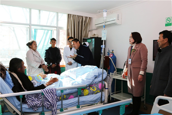 在藏歷新年和新春佳節(jié)來(lái)臨之際,2018年2月15日、16日,受公司黨委書(shū)記王斌同志委托,由公司黨委副書(shū)記、副總經(jīng)理陳彬同志,西藏阜康醫(yī)院院長(zhǎng)阿旺建才、西藏阜康醫(yī)院院長(zhǎng)歐珠羅布帶隊(duì)的雙節(jié)慰問(wèn)小組集中慰問(wèn)春節(jié)期間堅(jiān)守在一線(xiàn)的專(zhuān)家、醫(yī)務(wù)工作人員、行政后勤員工及不能出院與家人團(tuán)聚的患者。為他們送來(lái)了董事長(zhǎng)的關(guān)心和問(wèn)候,帶來(lái)了新年的美好祝愿和飽含暖暖情誼的慰問(wèn)禮物。
