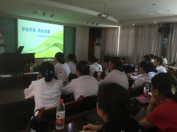 為將新知識、新理念及時引進我院,不斷更新護理管理理念,在護理部的組織下,由參會的兩位護士長授課,全院護士于2018年6月19下午4時,在西藏阜康醫(yī)院婦產兒童分院四樓會議室進行了學習。兩位護士長根據科室現(xiàn)狀及本次培訓所得經驗,以“學在華西,用在阜康”為主題,分享了護理管理的經驗及未來科室護理工作的趨勢。