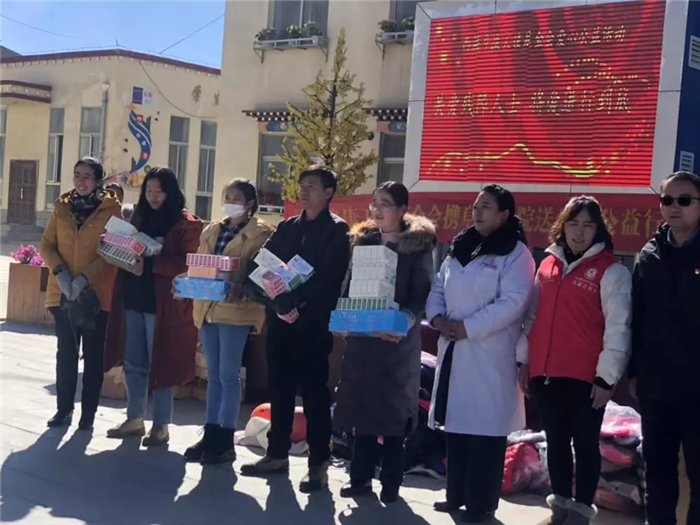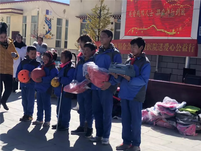 11月1日上午,西藏阜康天使基金會(huì)吉拉女士受西藏阜康醫(yī)療股份有限公司黨委書記、阜康天使基金會(huì)會(huì)長王斌先生,西藏阜康醫(yī)療股份有限公司總經(jīng)理、阜康天使基金會(huì)秘書長劉瀟瀟女士委托與西藏阜康醫(yī)院義診隊(duì)一起,攜價(jià)值一萬五千元的藥品和兩萬元的物資來到那曲市特殊教育學(xué)校,為這里的孩子們帶來了文化體育學(xué)習(xí)用品及藥品等物資。在特校校長次仁拉姆的組織下,特校師生列隊(duì)歡迎我們的到來,還精心準(zhǔn)備了錦旗和潔白的哈達(dá)。