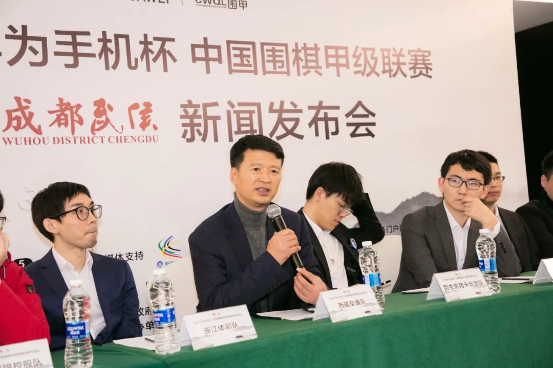 7日晚,2020華為手機杯中國圍棋甲級聯(lián)賽第二階段成都武侯分站賽第十輪賽后發(fā)布會于成都東方美豪麗致酒店舉行。中國圍棋協(xié)會副主席、棋圣聶衛(wèi)平,中國圍棋協(xié)會副主席、國家圍棋隊總領(lǐng)隊華學(xué)明及第十輪勝出的八支棋隊的代表出席了發(fā)布會。拉薩棋院院長、西藏自治區(qū)圍棋協(xié)會主席、西藏阜康隊領(lǐng)隊王斌出席會議并代表發(fā)言。