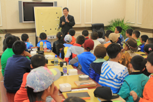 頒完獎(jiǎng)項(xiàng),本次拉薩市2015年“阜康杯”少兒圍棋錦標(biāo)賽也落下了帷幕。最后,我們有幸請(qǐng)到了國(guó)手九段的曹老為我們拉薩棋院的小棋手們講課,課上,一位位小棋手們端正坐好,聚精會(huì)神地聆聽著曹老講 課,生怕錯(cuò)過什么內(nèi)容。而曹老親切祥和的細(xì)微講解,加之其不時(shí)跟小朋友們提問、互動(dòng),也讓得這節(jié)特殊寶貴的課堂變得其樂融融!感謝曹老于百忙之中抽出時(shí)間為我們的小棋手講課,相信我們的小棋手們?cè)谶@樣一節(jié)課堂中,必然受益良多。