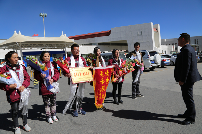 ? 值此秋高氣爽、碩果累累的豐收季節(jié),10月23日,阜康醫(yī)療隊(duì)圓滿完成阿里地區(qū)包蟲病義務(wù)篩查任務(wù),滿載榮譽(yù)而歸,隨著醫(yī)療隊(duì)全體成員從拉薩機(jī)場緩緩走出,陳彬副書記代表公司黨委對他們表示了熱烈的歡迎,并為每位隊(duì)員獻(xiàn)上鮮花和哈達(dá),歡迎他們回家。
