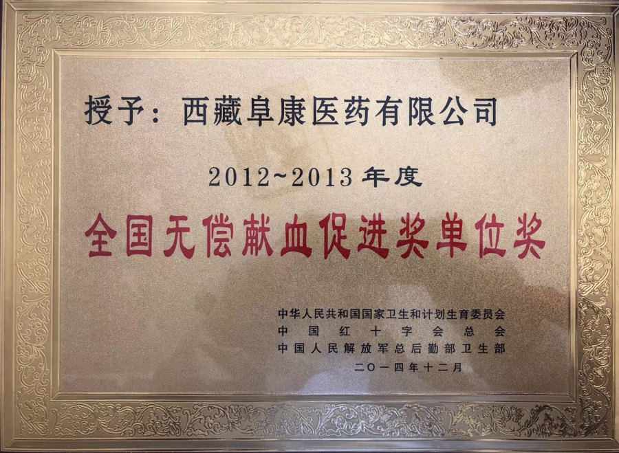 2012-2013年度 全國無償獻血促進獎單位獎中華人民共和國國家衛(wèi)生和計劃生育委員會