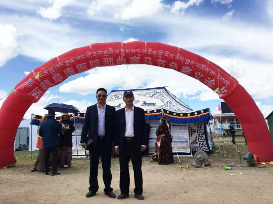 ▲黨委紀(jì)檢委員陳彬同志與嘎布院長義診點(diǎn)前的合影