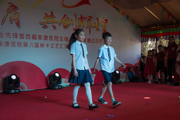 看藏裝典雅,賞舞姿婀娜。在三位主持人熱情洋溢的主持下,一曲優(yōu)雅典美的藏舞《芒康弦子》正式拉開了本次林卡文藝匯演的帷幕,也再度點(diǎn)燃了大家的林卡情懷!隨后,由醫(yī)院各科室員工帶來(lái)的諸如藏語(yǔ)歌曲演唱、小提琴演奏、架子鼓演奏、吉他演奏、古箏演奏、軍禮表演、現(xiàn)代舞蹈、獨(dú)舞、歌唱、小品、相聲、T臺(tái)秀、大合唱等一系列精彩紛呈的節(jié)目應(yīng)接不暇地呈現(xiàn)在大家眼前,讓現(xiàn)場(chǎng)觀眾為之歡呼雀躍,好不開懷。同時(shí),在本次的林卡文藝匯演中,還有一個(gè)十分特殊的節(jié)目——一個(gè)名為塔巴次仁的藏族小男孩及其家屬為我們?nèi)w阜康工作人員寫來(lái)一封感謝信,并在林卡演出現(xiàn)場(chǎng)為大家演唱了一首《感恩的心》。