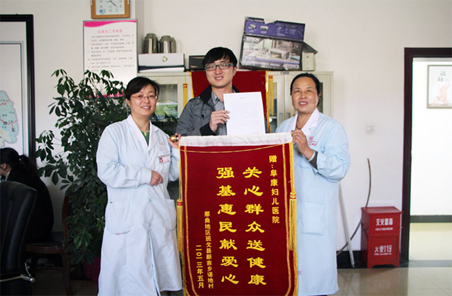 在給阜康婦產(chǎn)兒童醫(yī)院的感謝信中,新吉鄉(xiāng)人民政府對(duì)阜康婦產(chǎn)兒童醫(yī)院為新吉鄉(xiāng)衛(wèi)生院送去價(jià)值約1.5萬(wàn)元的常用藥品表示感謝。并表示這是阜康醫(yī)院作為社會(huì)力量以實(shí)際行動(dòng)積極響應(yīng)自治區(qū)黨委、政府的號(hào)召,積極投入創(chuàng)先爭(zhēng)優(yōu)強(qiáng)基惠民活動(dòng),以送醫(yī)送藥下鄉(xiāng)為平臺(tái),關(guān)心基層干部身體健康,熱心公益事業(yè)的充分體現(xiàn)。新吉鄉(xiāng)人民政府為此表示衷心感謝,而阜康婦產(chǎn)兒童醫(yī)院卻希望在今后的日子里能給予百姓更多的支持與幫助!