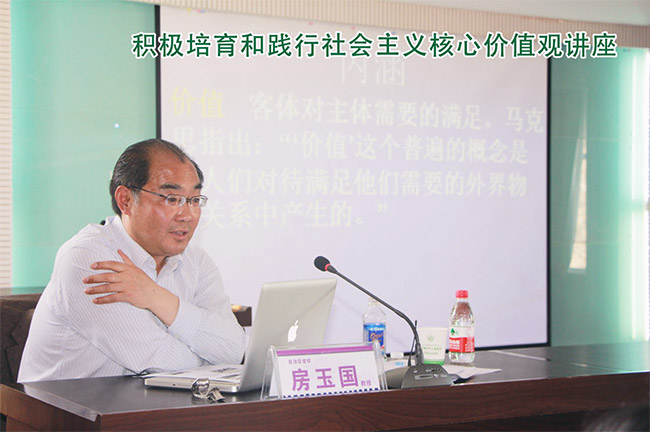 講座通過討論“新世紀(jì)的年輕人最缺乏的是什么?”相關(guān)內(nèi)容展開。房玉國教授從三個(gè)方面對此進(jìn)行了闡述:第一,培育和踐行社會(huì)主義核心價(jià)值觀是實(shí)現(xiàn)中國夢的助推器。核心價(jià)值觀蘊(yùn)含著人們對世界、人生、社會(huì)等一系列重大問題的價(jià)值共識(shí),深刻影響著每個(gè)社會(huì)成員的思想觀念、思維方式、行為規(guī)范,是人們思想上精神上的靈魂旗幟。第二,培育和踐行社會(huì)主義核心價(jià)值觀是鞏固主流意識(shí)形態(tài)地位的導(dǎo)航燈。主流意識(shí)形態(tài)在各種意識(shí)形態(tài)中有明顯的導(dǎo)向作用,能統(tǒng)領(lǐng)全體社會(huì)成員的價(jià)值追求和理想信念。第三,培育和踐行社會(huì)主義核心價(jià)值觀是集聚社會(huì)正能量的粘合劑。培育和踐行社會(huì)主義核心價(jià)值觀是引導(dǎo)全社會(huì)在思想上共同進(jìn)步、端正社會(huì)風(fēng)氣的基本途徑。