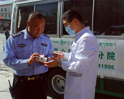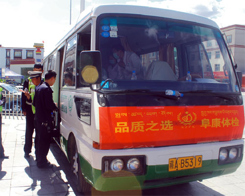 2014年6月1日上午,西藏阜康(國際)健康體檢中心派出免費(fèi)體檢車,為拉薩市公安局交警隊(duì)東西南北郊的執(zhí)勤民警們及女子中隊(duì)做了免費(fèi)體檢。