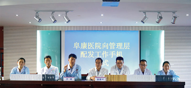 王斌董事長(zhǎng)在配發(fā)儀式上說(shuō)道:“給醫(yī)院中層領(lǐng)導(dǎo)配發(fā)手機(jī)是為了更好地聯(lián)系群眾,手機(jī)每月129元的套餐費(fèi)用由醫(yī)院出,這樣也大大降低了各科室主任、班組長(zhǎng)的通訊費(fèi)用,希望各位在以后的工作中更好地為大家服好務(wù)”。