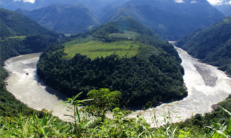 安頓好后,C陪我繞著村子走了走,一直走到一條滾滾蕩蕩的大江邊,終于受不住那股強(qiáng)流的寒風(fēng)才往回走?;氐叫:螅Y(jié)識(shí)了另一個(gè)走墨脫的單車(chē)旅行者,憨態(tài)可掬,被我稱(chēng)作傻大個(gè),這樣我們就湊上了一個(gè)墨脫之行的四人小隊(duì)伍。