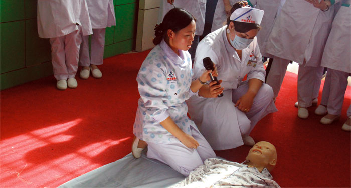 為了進一步規(guī)范我院職工心肺復(fù)蘇技能操作,同時通過模擬院內(nèi)突發(fā)急救事件,強化流程培訓(xùn),提高全院人員的急救意識,達到全員熟練掌握的目的, 2015年6月26日下午,我院組織舉辦心肺復(fù)蘇培訓(xùn)班。全院60多名護理人員參加了培訓(xùn)。急診科護士黃燕妮向參加培訓(xùn)的護理人員詳細(xì)講解了心肺復(fù)蘇緊急救護的基本原則、方法與步驟,通過現(xiàn)場模擬演練,讓參訓(xùn)人員對心肺復(fù)蘇的全過程有了更加深刻的理解。