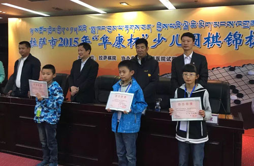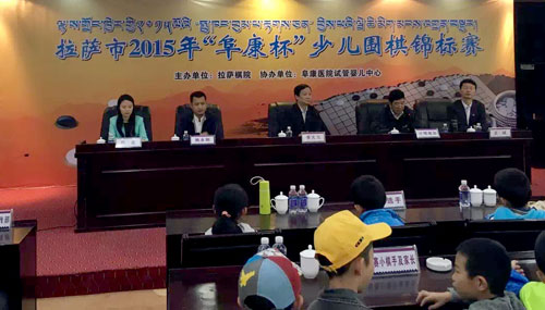2015年10月6日上年,拉薩市2015年“阜康杯”少兒圍棋錦標(biāo)賽開幕式于拉薩棋院正式舉行。出席本會(huì)議的領(lǐng)導(dǎo)及嘉賓有區(qū)黨委常委、拉薩市委書記齊扎拉,國(guó)手九段、山東圍棋隊(duì)總教練、拉薩棋院名譽(yù)院長(zhǎng)、名譽(yù)總教練曹大元,拉薩市政府副市長(zhǎng)計(jì)明南加,中央電視臺(tái)圍棋欄目主持人、天元圍棋頻道主持人、拉薩市棋院教練陳盈,西藏自治區(qū)體育局群體處處長(zhǎng)姚永剛,以及拉薩棋院院長(zhǎng)、西藏阜康醫(yī)藥發(fā)展有限公司董事長(zhǎng)王斌。