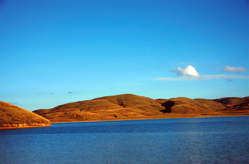 出了宜賓風(fēng)景就大不一樣,時(shí)而沿著高山峽谷在走,時(shí)而又攀升在碧綠的盤(pán)山公路。行至昭通,另一片天了,天空蔚藍(lán)蔚藍(lán),云朵開(kāi)始無(wú)遮無(wú)攔,大朵大朵的掛在頭頂,而空氣也開(kāi)始變得稀薄。眼前是大片大片黃褐色的山巒,樹(shù)木卻并不多,高速公路狀況極差,路兩旁的民居以平房居多,偶見(jiàn)一些小孩兒,三三兩兩。