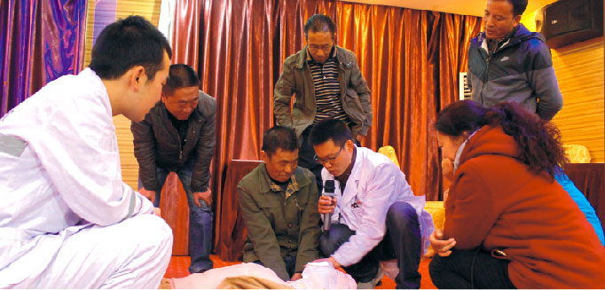 2016年3月24日,我院受邀于國網(wǎng)西藏直孔發(fā)電公司開展緊急救護培訓(xùn),由內(nèi)科醫(yī)生盤允、急診科護士肖明洋分別就“創(chuàng)傷院前急救技術(shù)”及“心肺復(fù)蘇概述”等相關(guān)專業(yè)知識進行講解。