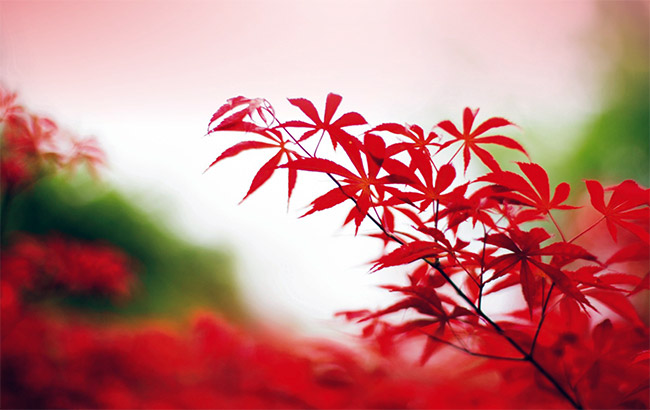 霞光猶殘楓染透,樹籠枝寒色依紅。