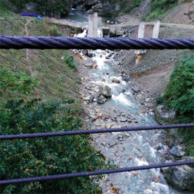 午飯之后是自由活動(dòng)時(shí)間,我們兩車人決定去對(duì)面的大山中逛逛。一路穿過農(nóng)莊果園,竹林菜地。大路的盡頭在半山腰間的亭邊,我們只能下車徒步去欣賞更深層的美景。山間驟雨,并沒有澆滅我們的熱情。漫步在木棧竹徑,青翠片片,竹林清幽,溪水潺潺, 晶瑩剔透。清風(fēng)拂過竹林驚起溪水蕩漾,空氣中都能嗅到濕潤的泥土與清新的花香彌漫交融。憩息在亭臺(tái)軒榭,薄霧冥冥,暗香流動(dòng),煙雨蒙蒙,如詩如畫。細(xì)雨落在山間織起飄渺幕幔,山谷里都能聽到飄來的煙嵐與青翠的竹林清奏天籟。站著煙雨中的吊橋上,詩意而空靈。在這蒙蒙細(xì)雨之中我體味到純凈清幽的大自然。
